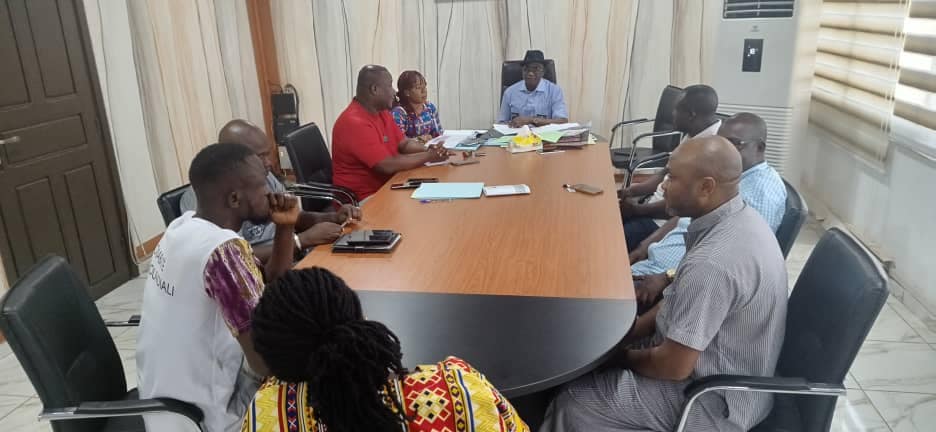 Le Maire YAO Étienne a eut ce jour une séance de travail avec « Totem Communication » et « Les enfants de Bouaflé », relativement au village CAN organisé au Complexe Sportif HKB en partenariat avec la Mairie de Bouaflé