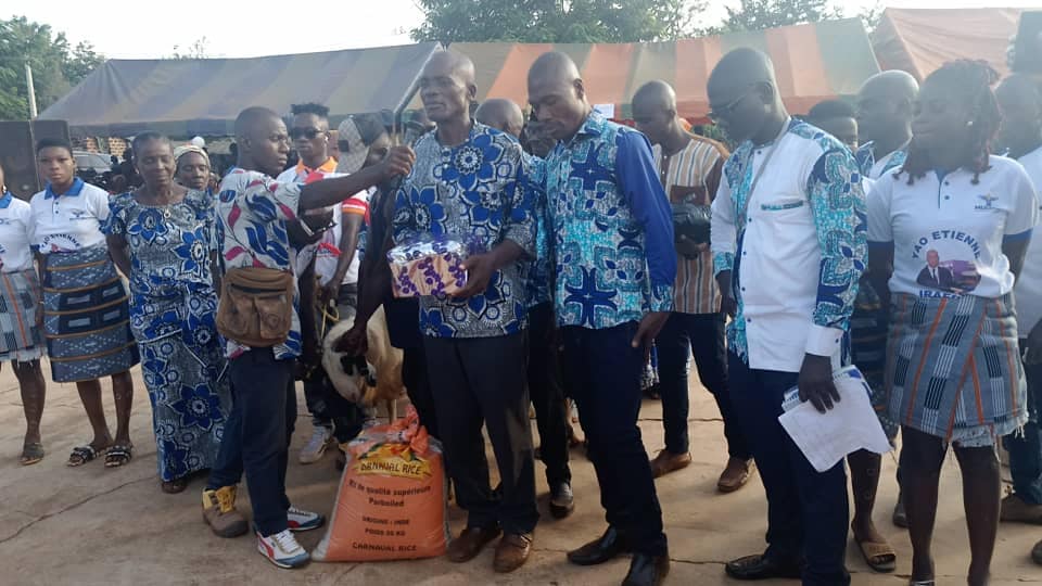 Cette activité organisée par la Mutelle de Développement Socioéconomique de Kikiekro (MUDESKI) a réuni les chefs, les cadres et fils du Yowlê sans distinction ethnique, religieuse ou politique, ainsi que plusieurs autres personnalités de Bouaflé et d’Abidjan. Les initiateurs de cette journée ont chaleureusement félicité et traduit toute leur reconnaissance au Maire de la commune de Bouaflé. Joignant les actes aux paroles, ils ont gratifié leur fils de plusieurs présents en espèces, en vivres, et objets symboliques, Etc…